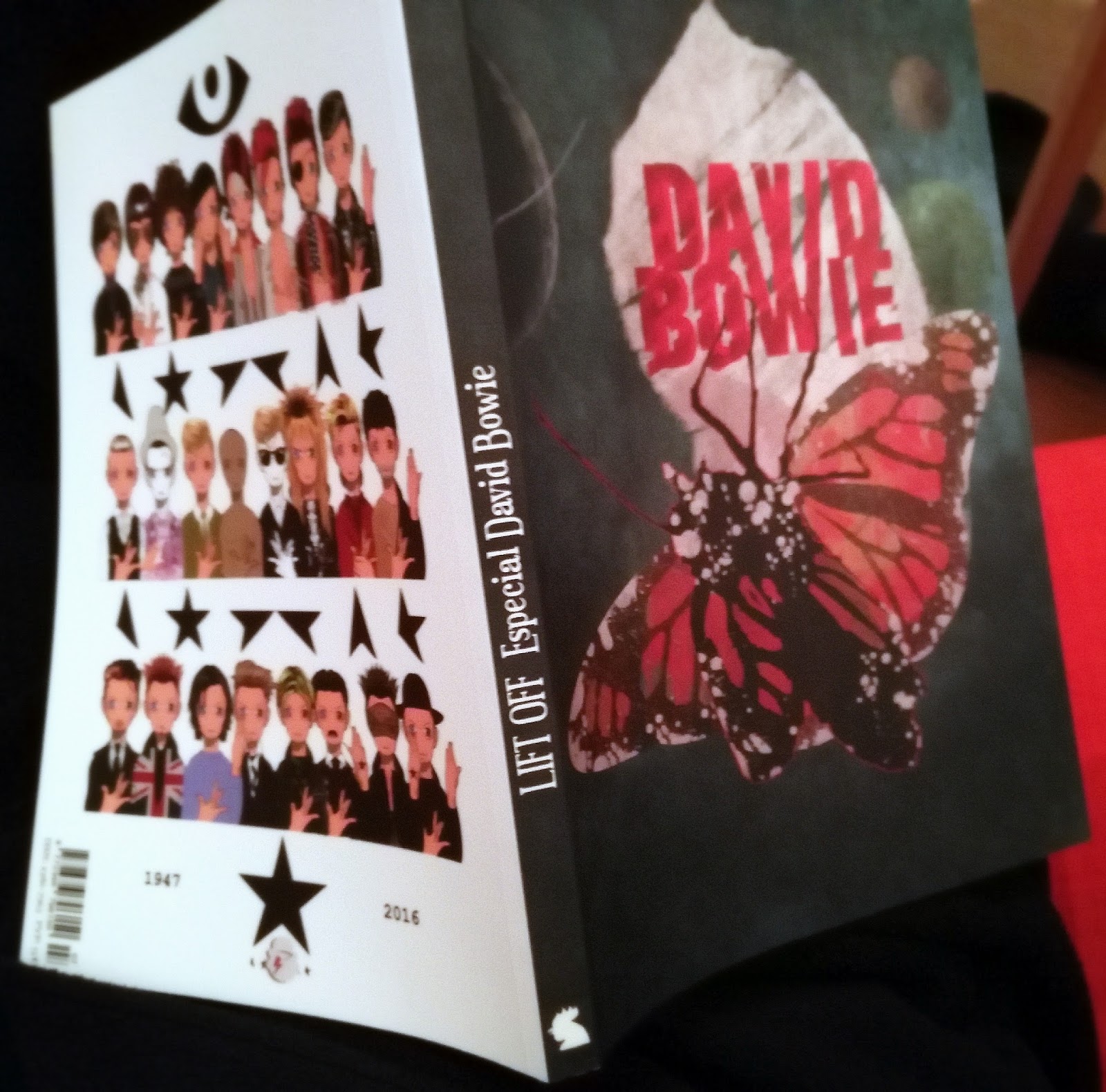 2016 ha sido, sin duda, el más nefasto año de los que llevo vividos. Me quedan más, y acojona, no lo niego. Pero ahora es hoy y es presente y duele, y 2016 (decía) ha sido el año más jodido de mi jodida existencia. Afortunadamente, hay quien desea cauterizar, cicatrizar heridas con fogatas de abrazo y zurcidos de amor. Los chicos de La Galla Ciencia, esos alienígenas. Jóvenes que luchan a brazo partido por la Poesía, a quienes no amedrentan las leyes del mercado, que boxean en cualquier cuadrilátero en que no haya más knock out que el de la palabra bien dicha y mejor sentida, que hacen de la lírica emoción y de sus emociones pura lírica. Ellos llevan ya unos años regalando prodigios a todo aquel que sigue buscando fulgor en la página impresa, y sólo ellos podían emprender este colosal homenaje a Bowie que hoy, por fin, ha llegado a mis manos y corre el riesgo de perder su tinta en los meandros que dibujan mis lacrimales. Hoy estoy llorando, de nuevo, desordenando con mi llanto la aritmética fugaz y exacta de este año maldito... pero en esta ocasión mi vida es lágrima por sentir que roza, con manos y latido, la Belleza.
